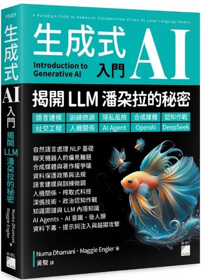 本書不需要數學基礎,也不用具備程式設計或人工智慧的知識。只要你對生成式 AI 如何影響世界感興趣,本書就是你進入這個領域的最佳指引。我們將解析大型語言模型(LLM)的運作原理,探索 LLM 如何塑造科技產業的未來,並剖析生成式 AI 在社會、經濟、法律與政治各領域帶來的機遇與風險。( 博客來)