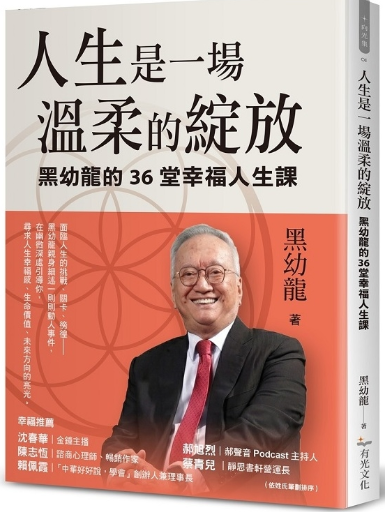 本書精選黑幼龍老師的36則故事,用親身經歷與深刻觀察,寫給青年、壯年、中年的你,陪你找回初心、釐清方向、活出更好的自己。從青澀的求學時期,到職場歷練、婚姻經營、親子關係,各個時期都藏著形塑未來的關鍵時刻,也需要不斷修正與學習。( 博客來)